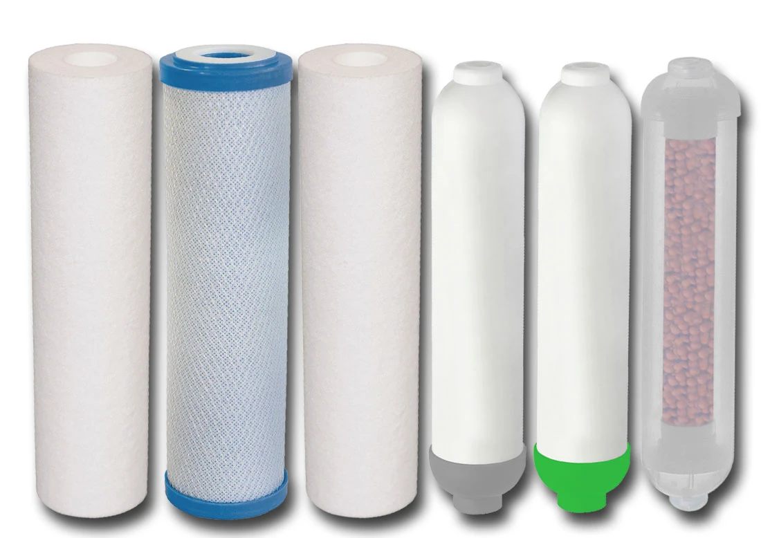Zestaw sześciu wkładów stosowanych do filtracji i uzdatniania wody pitnej. Standardowo montowany w systemach odwróconej osmozy typu RO7/FRO5MA z końcową mineralizacją wody oraz ostatnim stopniem - filtrem bioceramicznym (rezonatorem FIR). Zestaw do wymiany rocznej.