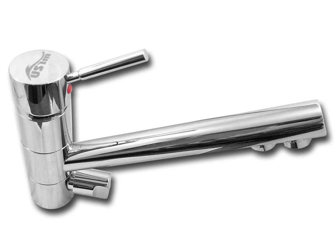 Bateria kuchenna UST-M FCTC-L1 charakteryzuje się wysoką funkcjonalnością, niewielkimi gabarytami i nowoczesnym wzornictwem. Kranik posiada dwa niezależne perlatory (jeden dla wody bieżącej, drugi dla wody filtrowanej). W komplecie z baterią kuchenna znajdują się elastyczne wężyki w oplocie metalowym oraz elementy umożliwiające podłączenie standardowego przewodu z filtra wody o średnicy 1/4 cala (6,4 mm).