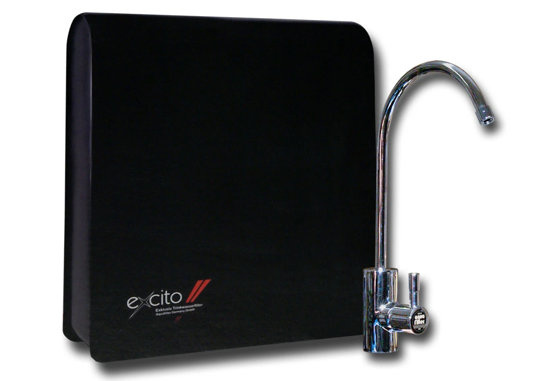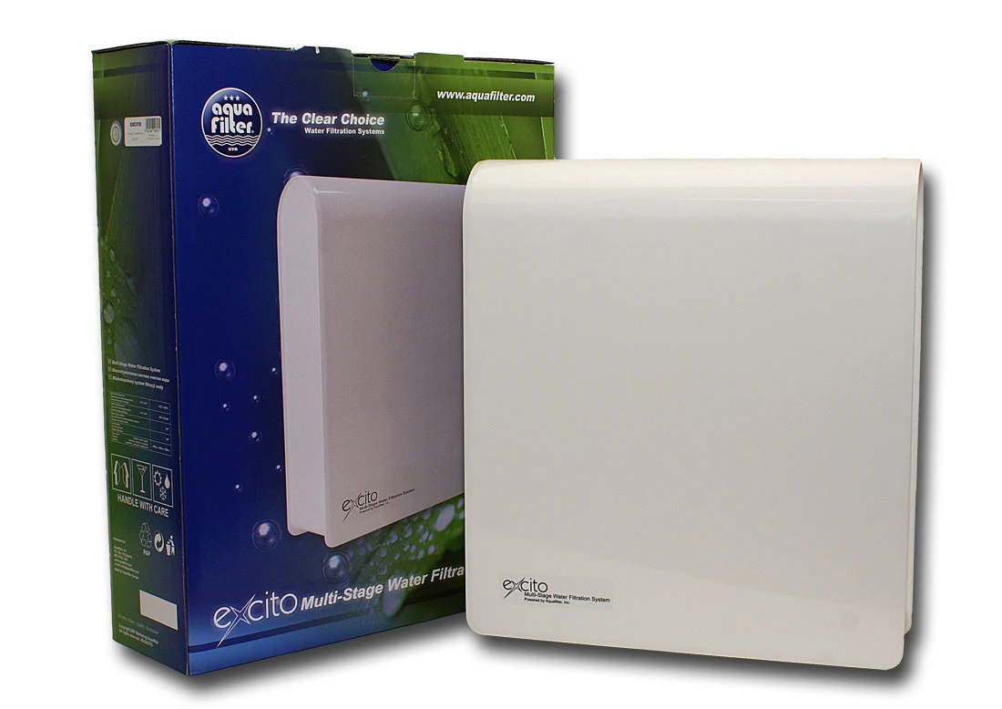 Nowoczesny produkt firmy Aquafilter - filtr podzlewozmywakowy EXCITO-ST, którego konstrukcja oparta jest o nowoczesne wkłady liniowe 2,5 cala, zapewniające dokładniejsze filtrowanie wody (liniowy przepływ zapewnia dłuższy czas kontaktu wody z mediami filtrującymi).