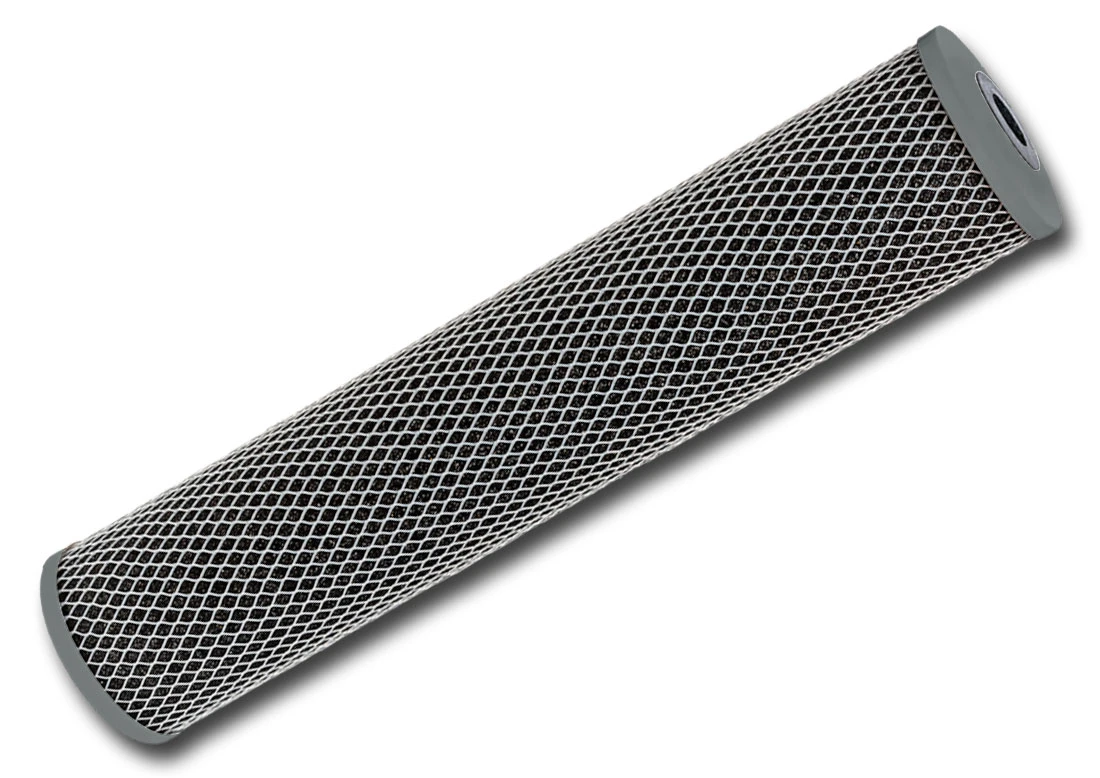 Wkład ze spiekanego węgla aktywowanego o bardzo dużej zdolności adsorpcji zanieczyszczeń. Wyjątkowo przydatny w usuwaniu chloru i jego pochodnych oraz związków organicznych. Redukuje substancje organiczne wpływające na zły smak i zapach wody. Jego zaletą jest mały spadek ciśnienia wody przepływającej przez wkład.