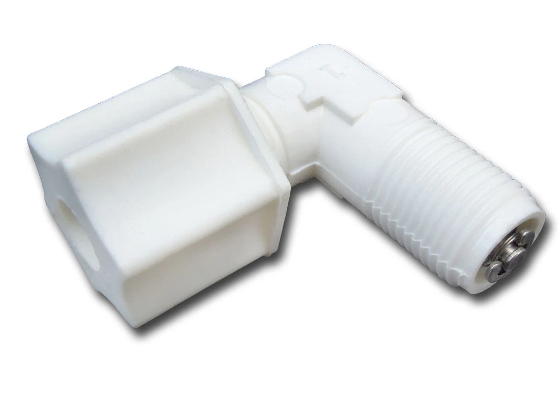 Zaworek zwrotny, osadzony w kolanku ze złączką skręcaną typu JACO na wężyk 1/4cala, do systemów uzdatniania wody. Typowo stosowany na wyjściu wody uzdatnionej z membrany osmotycznej. Zabezpiecza membranę przed niekontrolowanym dopływem wody od strony wylewki oraz blokuje uciekanie wody ze zbiornika do kanalizacji.