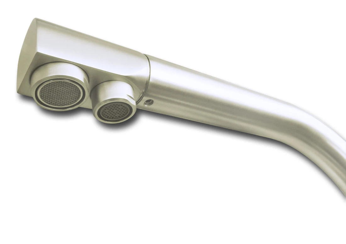 Bateria kuchenna Aquafilter FXFCH13-4-M charakteryzuje się wysoką funkcjonalnością, jakością wykonania i uniwersalnym, klasycznym wzornictwem, pasującym do większości aranżacji kuchni. Kranik posiada jeden, dwufunkcyjny perlator (osobne kanaliki dla wody bieżącej i filtrowanej). W komplecie z baterią kuchenna znajdują się elastyczne wężyki w oplocie metalowym oraz elementy umożliwiające podłączenie standardowego przewodu z filtra wody o średnicy 1/4 cala (6,4 mm).