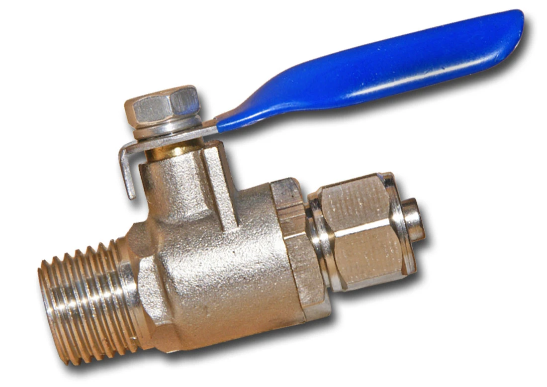 Metalowy zawór kulowy stosowany typowo do podłączenie dopływu wody do filtra. Umożliwia bezpośrednie podłączenie wężyka 1/4 cala (6,35 mm) stosowanego w domowych filtrach wody z instalacją wodną 1/4 cala (np. z metalowymi przyłączami wody).