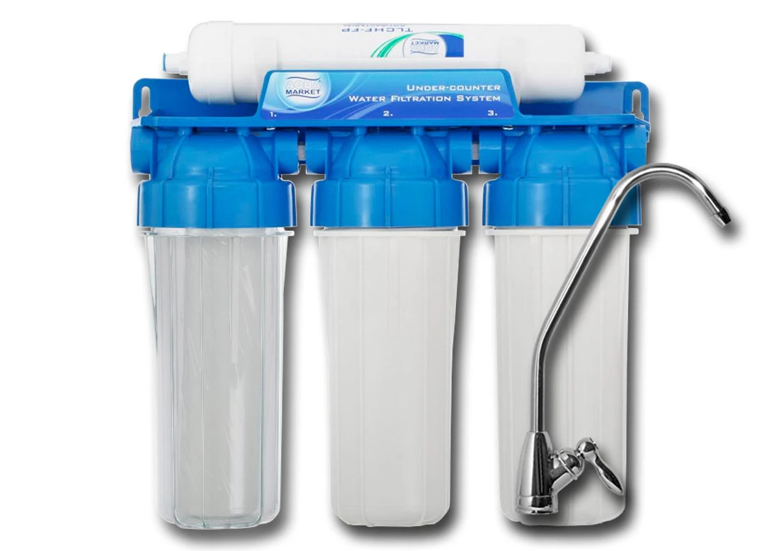 Czterostopniowy filtr podzlewozmywakowy Aquamarket FP3-4 (FP3-HJ-Aquamarket) wyposażony w trzy wkłady filtracyjne i membranę kapilarną: