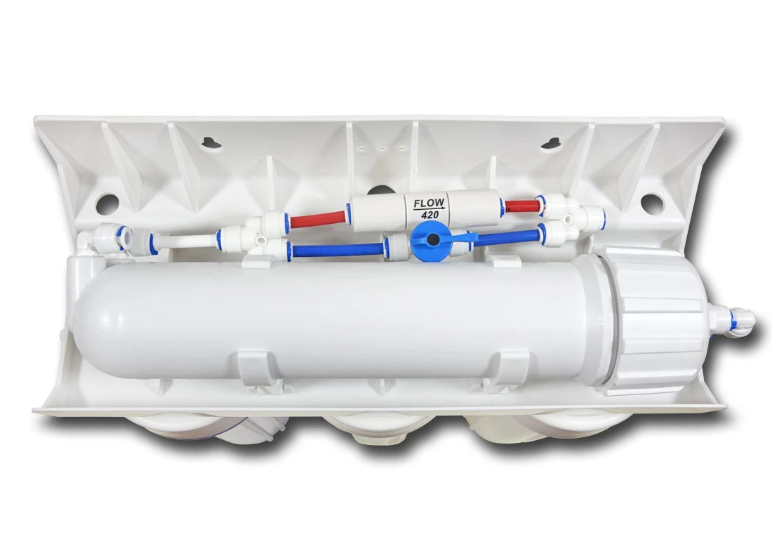 Filtr odwróconej osmozy, skonstruowany specjalnie do celów akwarystycznych. Konstrukcja oparta o standardowe korpusy na wkłady 10x2,5 cala, w pełni funkcjonalna i kompletna, gotowa do podłączenia i używania. Wykorzystywany najczęściej w akwarystyce morskiej, do przygotowywania wody na "dolewki" oraz przy zakładaniu akwarium morskiego. Stosowany również do akwariów słodkowodnych w których odwzorowane są biotopy z miękką wodą (np. Amazonka itp).