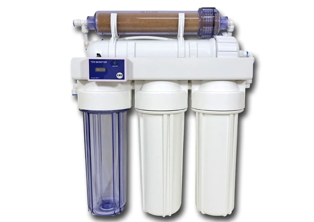 Filtr odwróconej osmozy z demineralizacją wody, skonstruowany specjalnie do celów akwarystycznych. Konstrukcja oparta o standardowe korpusy na wkłady 10x2,5 cala, w pełni funkcjonalna i kompletna, gotowa do podłączenia i używania. Wykorzystywany najczęściej w akwarystyce morskiej, do przygotowywania wody na "dolewki" oraz przy zakładaniu akwarium morskiego. Stosowany również do akwariów słodkowodnych w których odwzorowane są biotopy z miękką wodą (np. Amazonka itp).