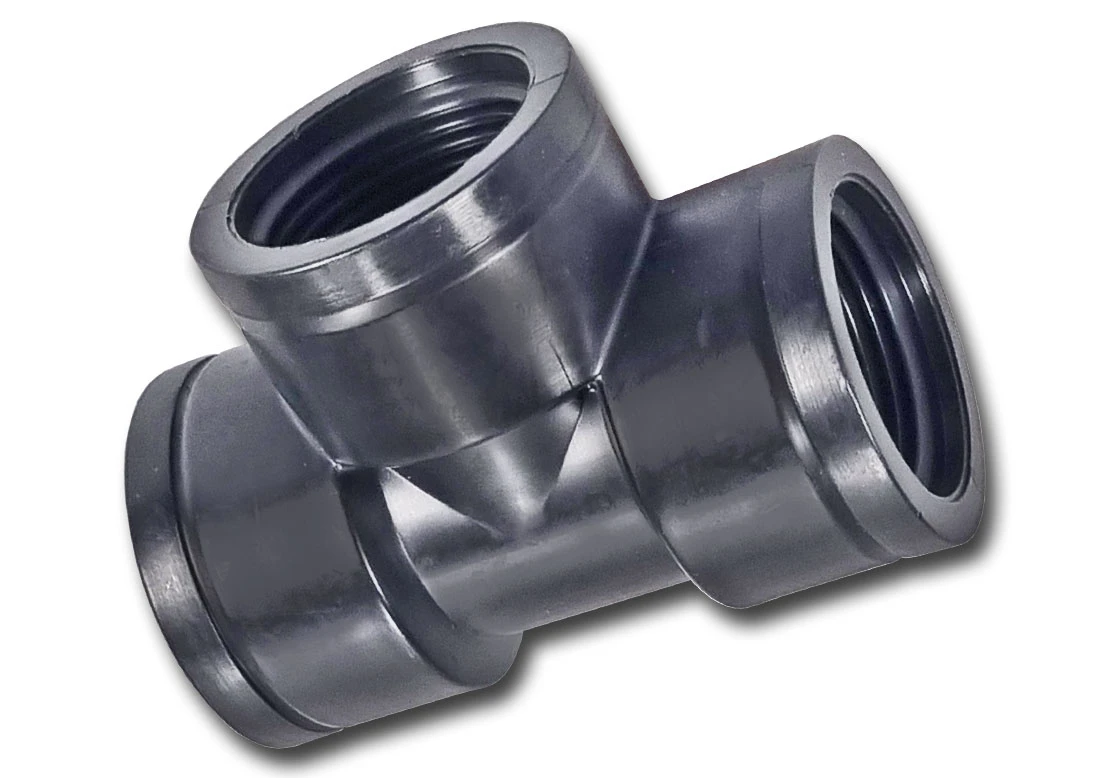Trójnik z trzema gwintami o tej samej średnicy.