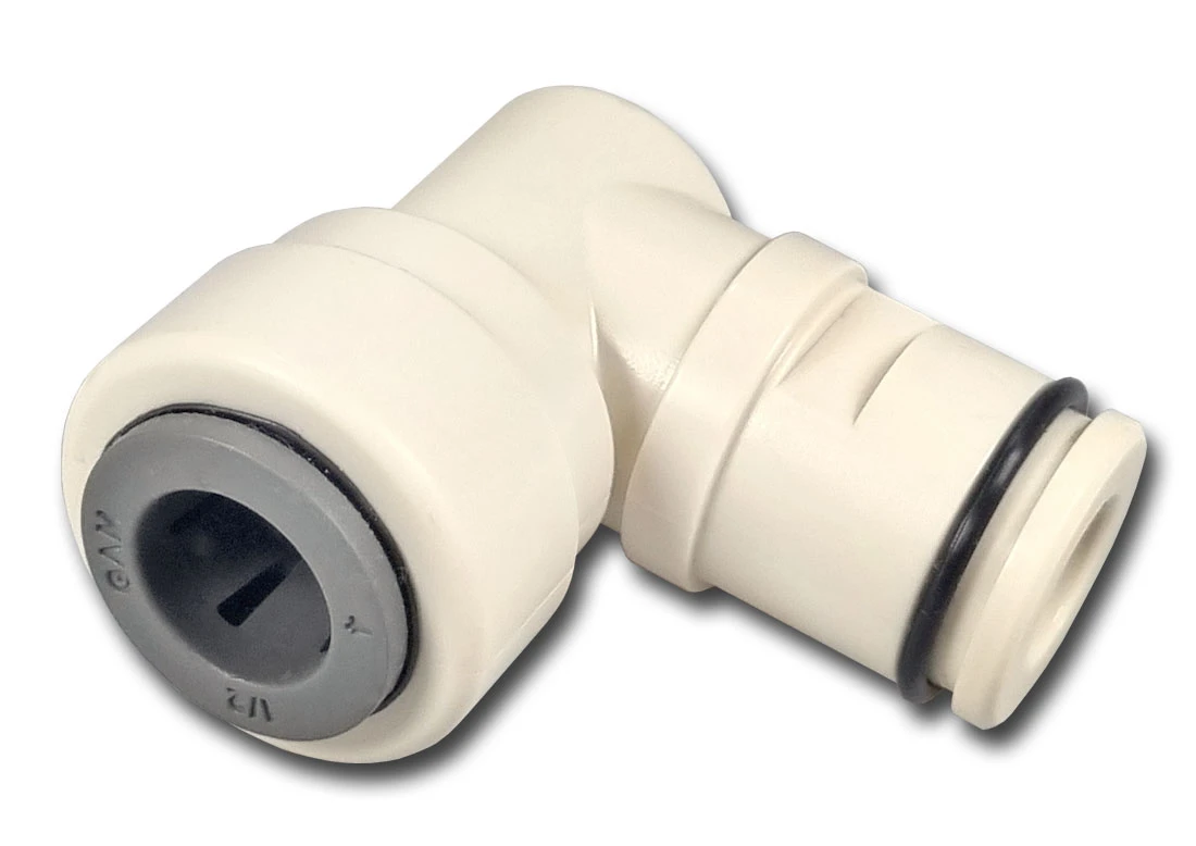 Kolanko 1240117 wyposażone w mechanizm połączenia wężyka typu JG (szybkozłącze) na wężyk 1/2 cala.