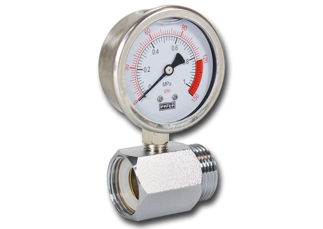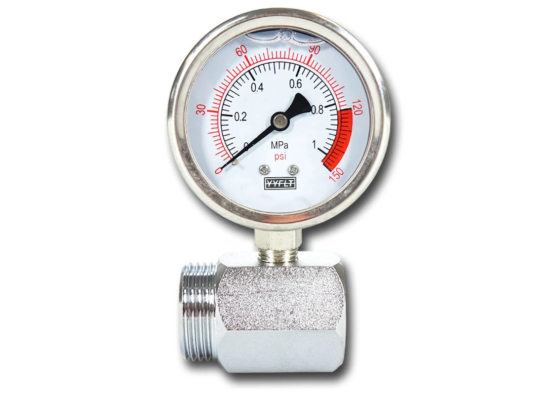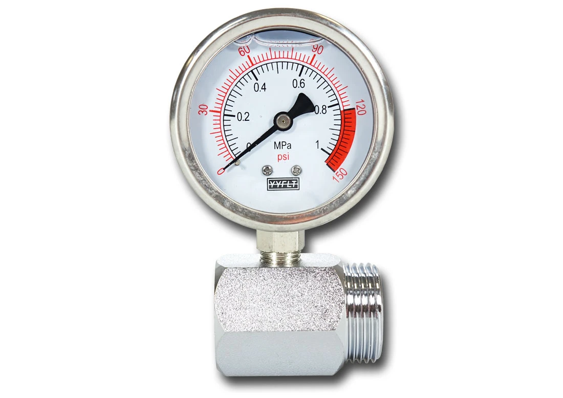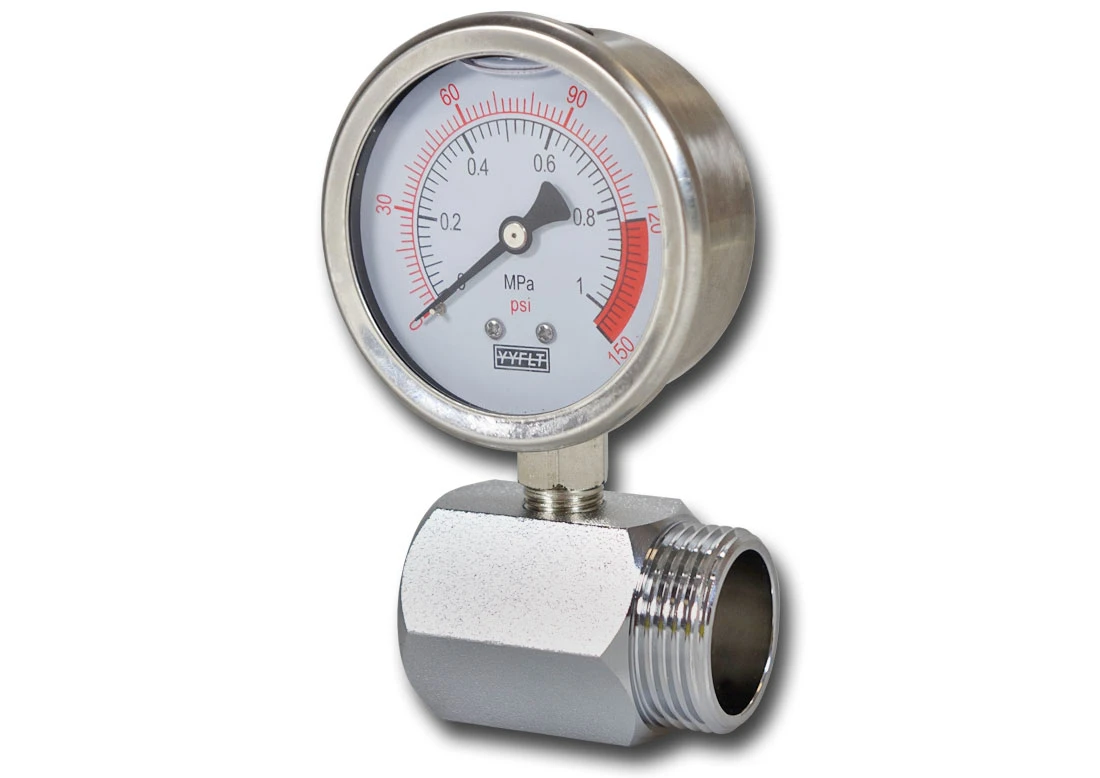 Manometr do pomiaru ciśnienia w instalacji wodnej lub systemie filtracji. Gwint zewnętrzny 1/4" NPT. Poprzez odpowiednie przyłącza można go zainstalować w każdej, typowej instalacji wodnej.