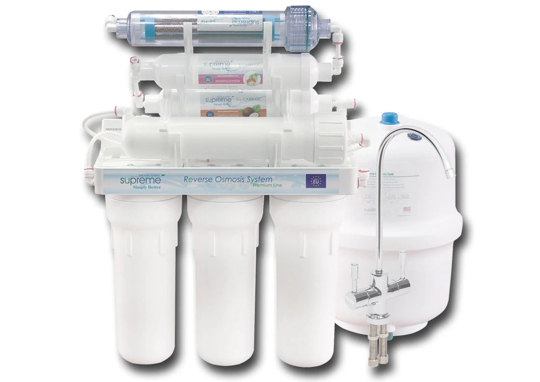 Filtr wody dedykowany do celów spożywczych. Zbudowany jest z siedmiu stopni filtrów specjalistycznych. Filtr RO7-SUPREME-PREMIUM uzdatniający wodę metodą odwróconej osmozy (inaczej filtracja molekularna).