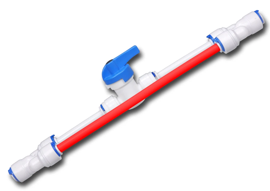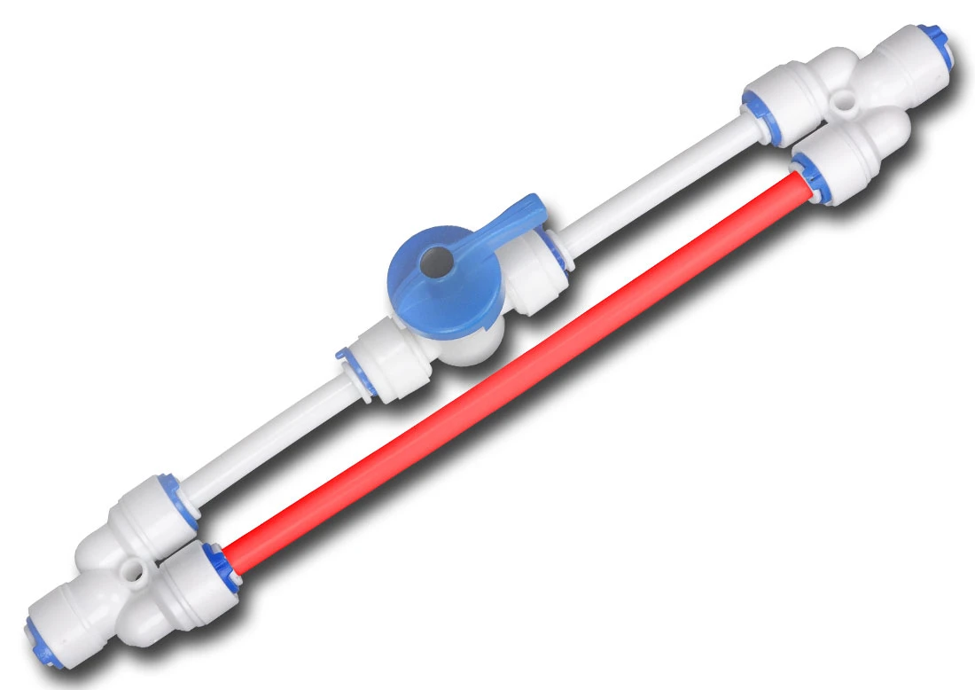 Zestaw do płukania membrany odwróconej osmozy w celu wydłużenia jej żywotności. Zestaw montuje się na stałe w miejscu ogranicznika ścieku, wykonując poniższe kroki. Przed montażem zestawu upewnij się, że filtr nie uzdatnia w tym momencie wody (woda nie płynie do kanalizacji) lub też zakręć zawór doprowadzający wodę do filtra.