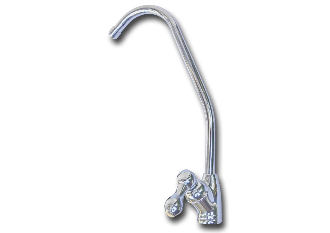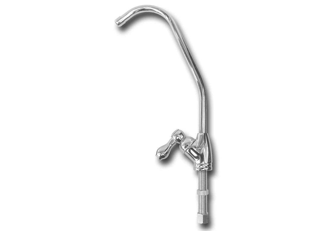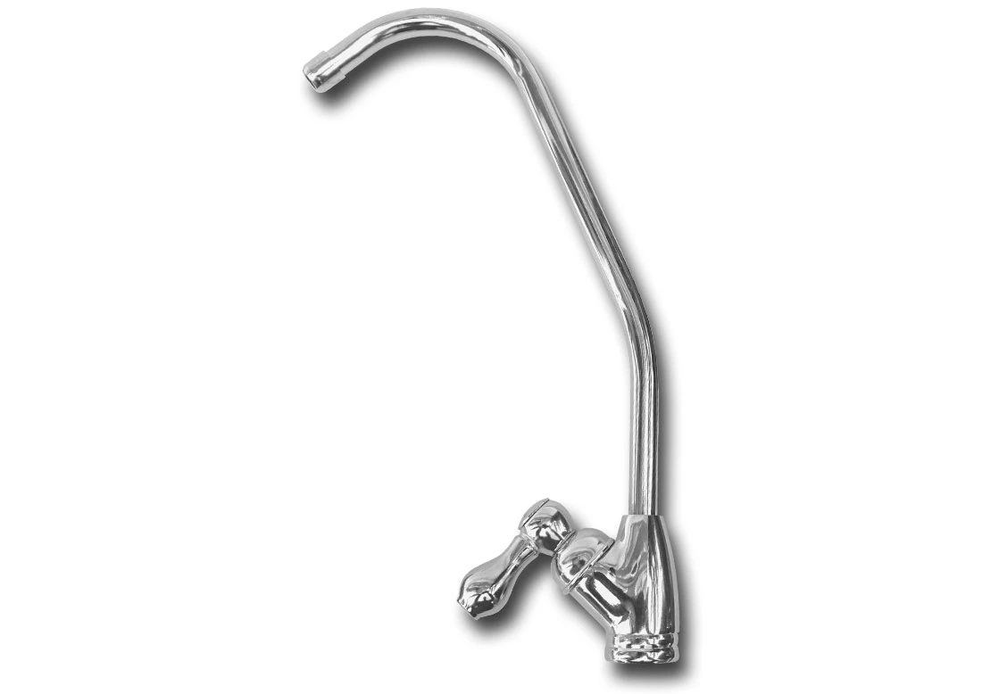 Chromowany kranik do pobierania wody filtrowanej z zaworem ceramicznym. Podstawowa wylewka umożliwiająca pobieranie wody z filtrów montowanych pod zlewozmywakiem. Metalowe elementy kranika są pokryte chromem i wyglądają estetycznie w większości kuchni. Zawór (głowiczka) który umożliwia pobieranie wody z filtra, wykonany jest z materiału ceramicznego i umożliwia przełączenie w jedną z dwóch pozycji - lewo i prawo. Im bardziej odkręcony kurek kranika, tym mocniejszy strumień wody z filtra.