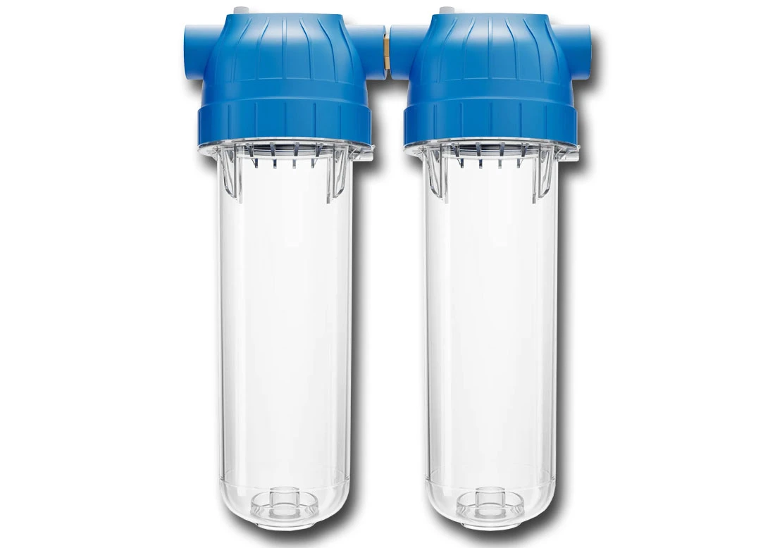 Stacja uzdatniania wody na wkłady standardu wymiarowego 10x2,5 cala. Wydajność odpowiednia do stosowania na głównych przyłączach wody w mieszkaniach a w przypadku filtracji mechanicznej, również małych domach.