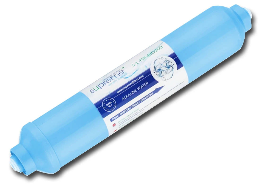 Profesjonalny wkład alkalizująco-jonizujący Supremefilters S-L-FIR-BIO200 stosowany w celu obniżenia wskaźnika REDOX ORP wody, oraz mineralizacji i alkalizacji wody. Zawiera złoża wprowadzające do wody magnez, dzięki czemu wspomaga ludzki organizm, głównie układ nerwowy i sercowo-naczyniowy.