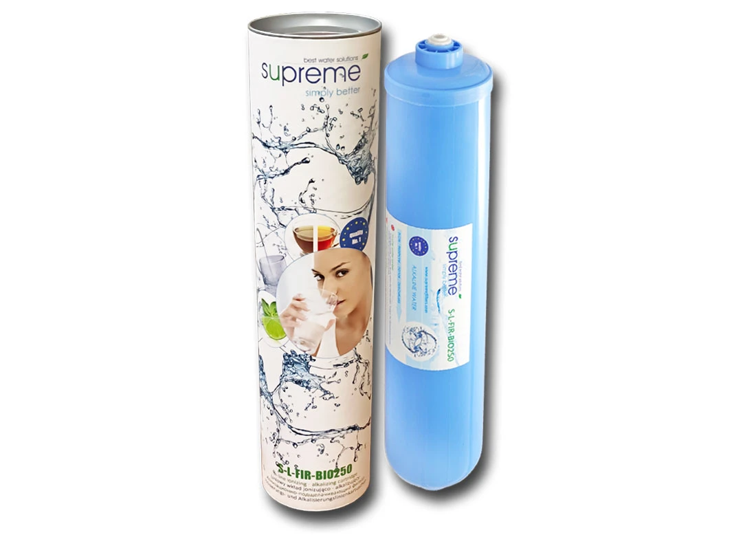 Profesjonalny wkład alkalizująco-jonizujący Supremefilters S-L-FIR-BIO250 stosowany w celu obniżenia wskaźnika REDOX ORP wody, oraz mineralizacji i alkalizacji wody. Zawiera złoża wprowadzające do wody magnez, dzięki czemu wspomaga ludzki organizm, głównie układ nerwowy i sercowo-naczyniowy.