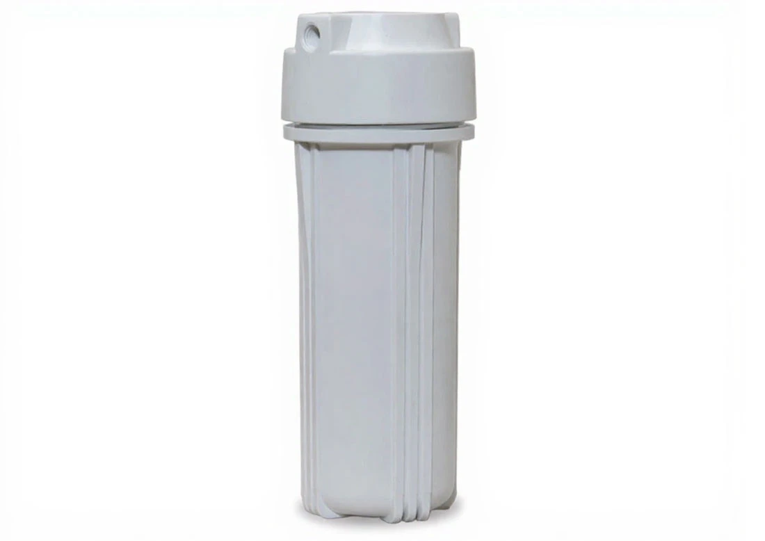 Biały korpus do systemów odwróconej osmozy i filtrów podzlewozmywakowych, do wkładów 10" x 2 1/2". Montowany jest na płytce przy pomocy 4 wkrętów. Stosowany głównie na stopniach filtracji zawierających wkłady węglowe.