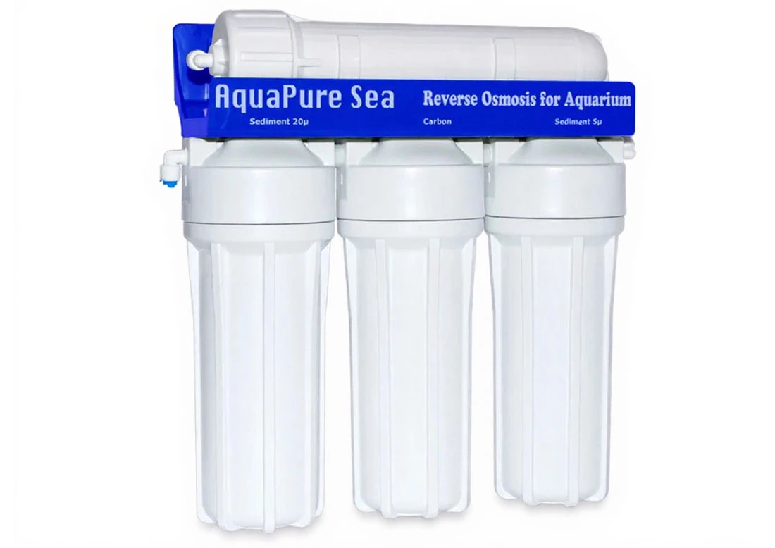 Akwarystyczny filtr odwróconej osmozy, polecany do przygotowywania wody dla dużych zbiorników (słodkowodnych oraz morskich). System AquaPure ROA4-AP-100 polecamy dla tych akwarystów, którzy potrzebują około 100-300 litrów wody RO tygodniowo. Oczywiście z uwagi na wydajność membrany (do 370 litrów wody na dobę), możliwa jest do uzyskania większa ilość wody, jednak z uwagi na czas potrzebny na jej wyprodukowanie, podane wcześniej ilości są optymalne.