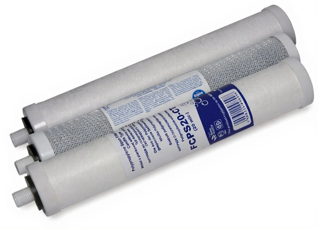 - FCPS20-CT - wykonany z włókniny polipropylenowej usuwa rdzę i piasek i inne osady znajdujące się w wodzie wodociągowej. Zapewnia filtrację na poziomie 20 mikronów, usuwając widoczne osady.