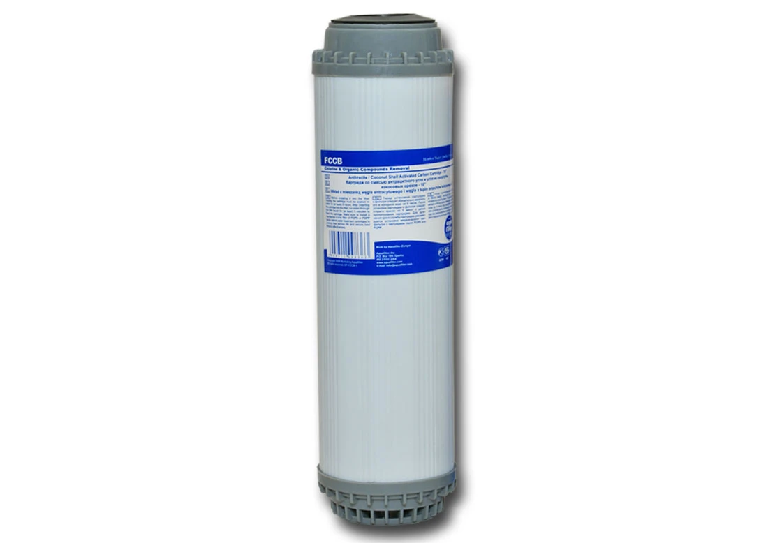 Skuteczny wkład z kompozycją aktywowanego węgla bitumicznego i węgla antracytowego. Aquafilter FCCB wykazuje szczególną zdolność absorpcji