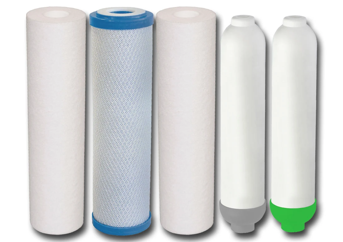Komplet pięciu atestowanych wkładów znakomitej jakości, do wymiany rocznej w filtrach RO6 (również FRO5M, ARO-6 itd), które mają trzy stopnie filtracji wstępnej oraz końcowe: wkład węglowy i mineralizator wody. Komplet składa się z wkładów: