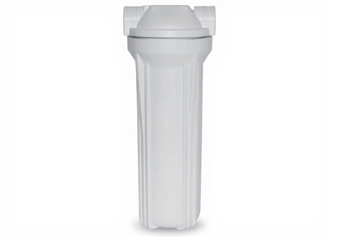 Biały korpus do systemów odwróconej osmozy i filtrów podzlewozmywakowych, do wkładów 10" x 2 1/2". Montowany jest na płytce przy pomocy 4 wkrętów. Stosowany głównie na stopniach filtracji zawierających wkłady węglowe.