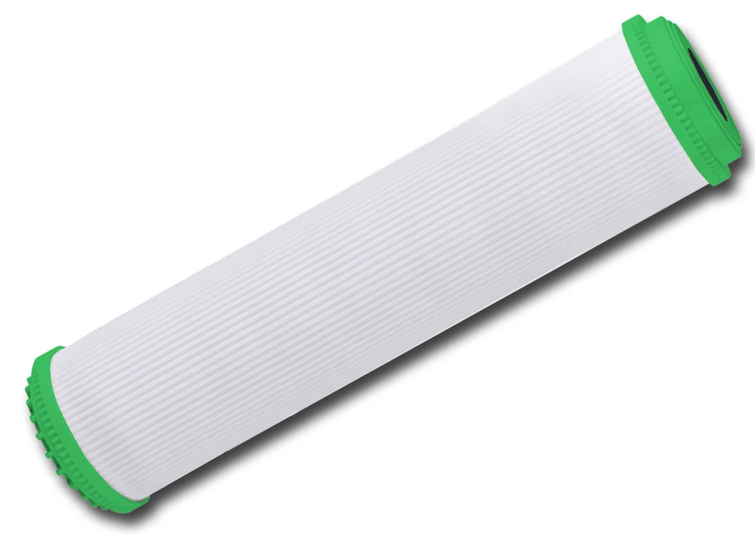 Specjalistyczny wkład węglowy z bakteriostatycznym czynnikiem KDF, zapobiegającym rozwojowi bakterii oraz redukujący stężenie metali ciężkich w wodzie. Wykazuje szczególną zdolność adsorpcji